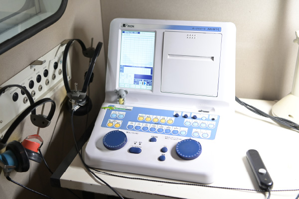 - 防音室にて純音聴力検査を行い、難聴の程度、パターンを測ります。